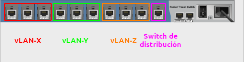 - Configurar los puertos de cada switch como troncales o puertos de accceso según sea el caso