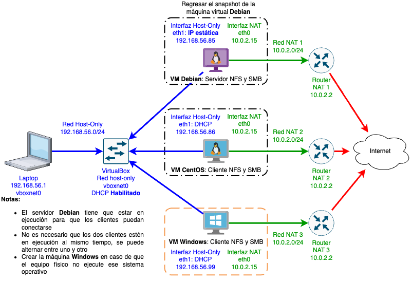 El alumno realizará la configuración de un servidor de archivos que comparte un directorio a los demás equipos de la red utilizando los protocolos NFS y SMB.