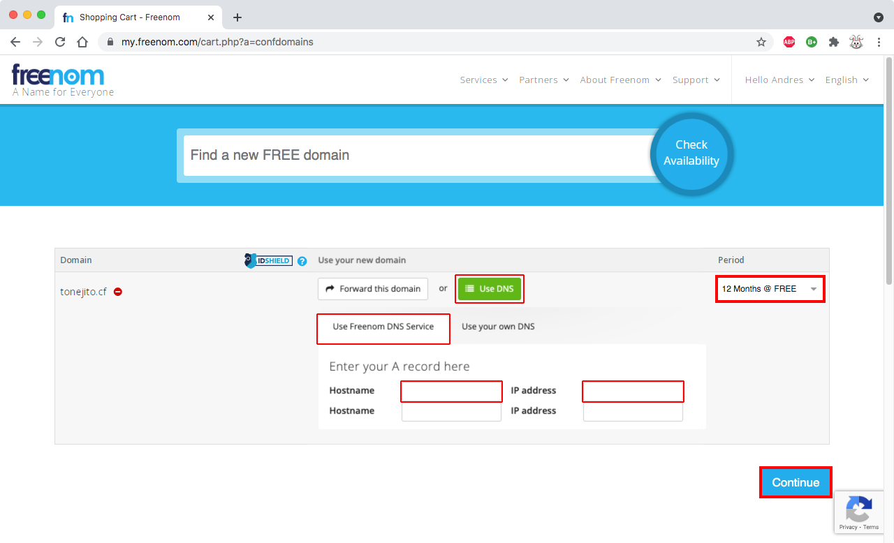 - Use FreeNom DNS servers, esto se cambiará más adelante
