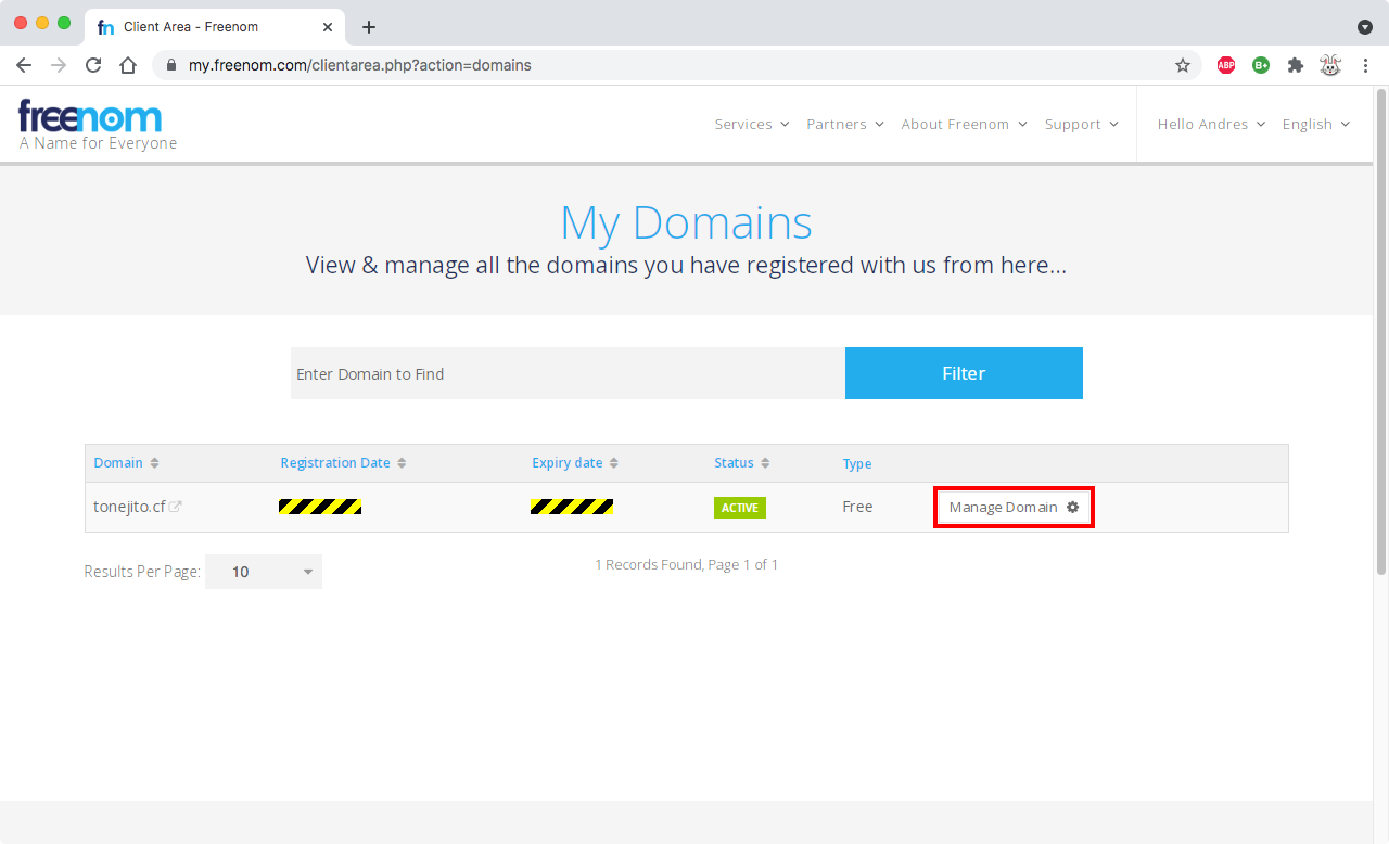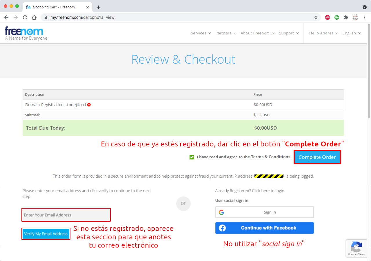 Registrar nombre de dominio en FreeNom#