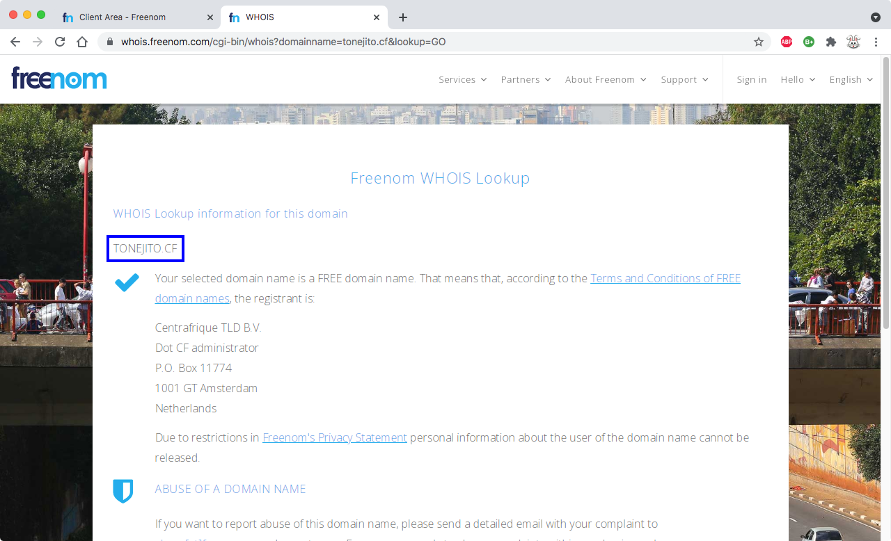 usuario@laptop ~ % whois tonejito.cf.