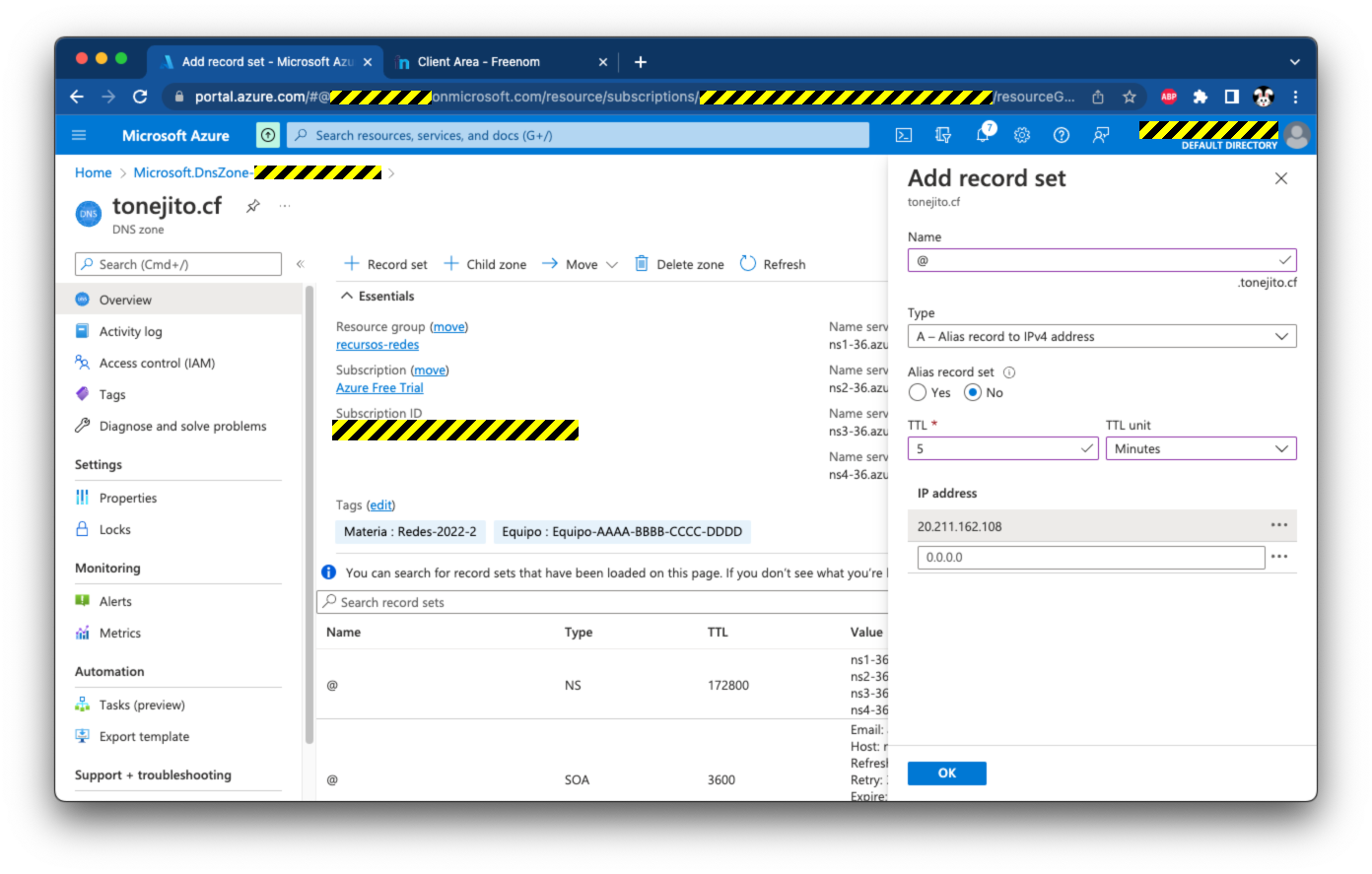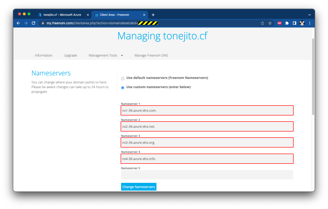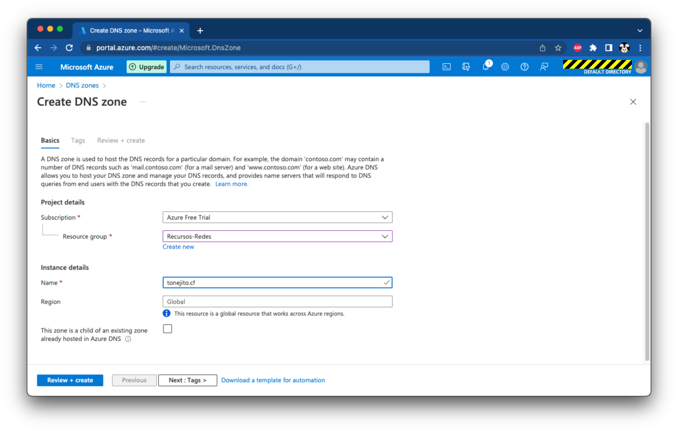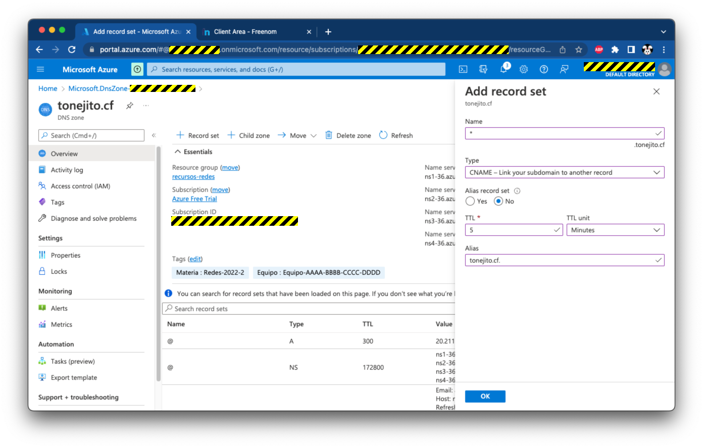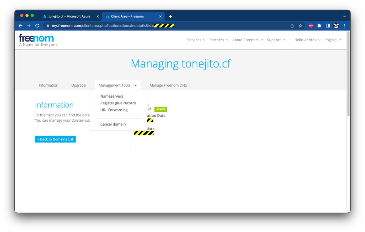 El registro azure.tonejito.cf.