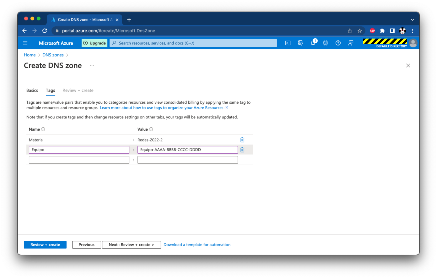 Crear zona DNS - Etiquetas |