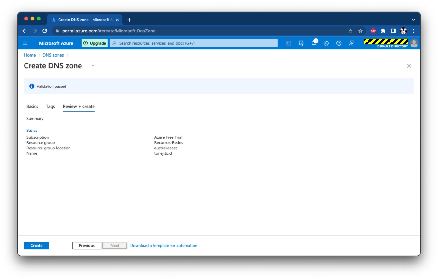 Crear zona DNS - Confirmar |