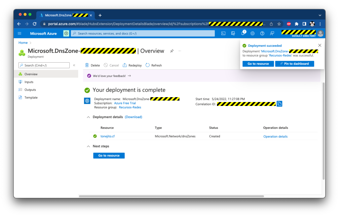 Esperar a que termine el despliegue de la zona DNS