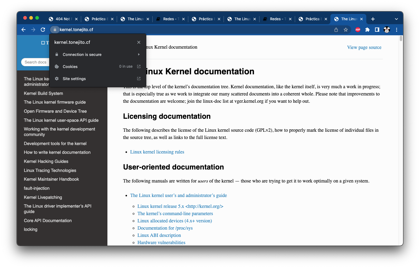 Visita la misma URL con un navegador web y asegúrate de que se muestre el sitio web de la documentación del kernel Linux