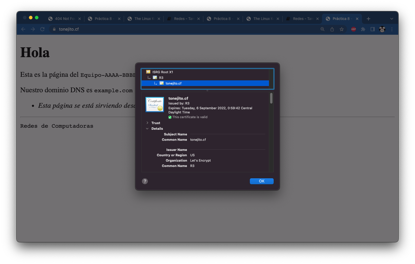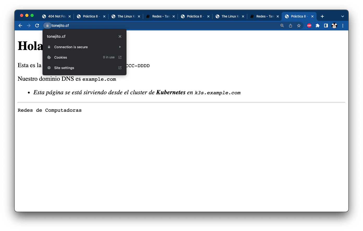 - Continúa en la página principal si el certificado SSL emitido por Let's Encrypt instalado en el ingress controller y si los sitios web se muestran correctamente por HTTPS