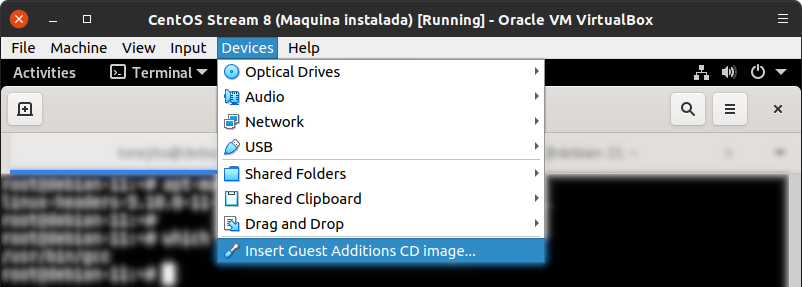 - Inserta la imagen ISO de las utilerías de VirtualBox en la máquina virtual
