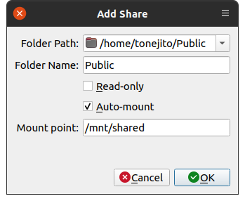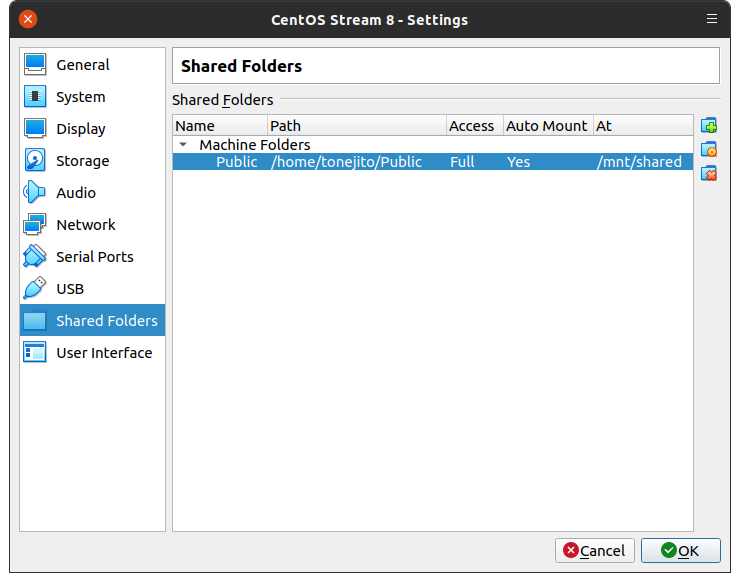 Public on /mnt/shared type vboxsf (rw,nodev,relatime,iocharset=utf8,uid=0,gid=973,dmode=0770,fmode=0770,tag=VBoxAutomounter)