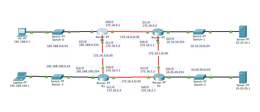 W | R0 | 172.16.0.1 | 255.255.255.252 |